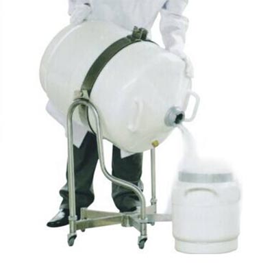 該產(chǎn)品采用全不銹鋼制造,便于用戶(hù)在室內(nèi)方便轉(zhuǎn)運(yùn)液氮罐,解決了大容積液氮罐轉(zhuǎn)運(yùn)困難的問(wèn)題,同時(shí)可以方便地將其手推把拆換成翻轉(zhuǎn)架部件,達(dá)到輔助人工傾倒容器中液氮的目的。具有轉(zhuǎn)運(yùn)和傾倒液氮罐安全可靠、節(jié)省體力的優(yōu)點(diǎn)。